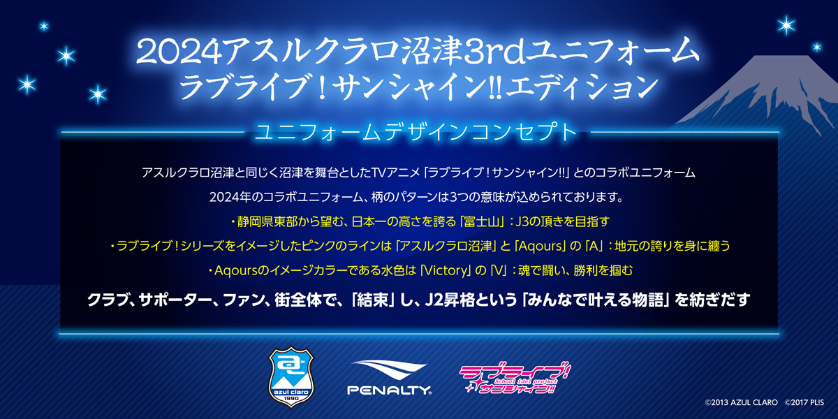 2022シーズンよりプロジェクトラブライブ!サンシャイン!!がオフィシャルパートナーとなっている沼津のサッカーチーム、アスルクラロ沼津
