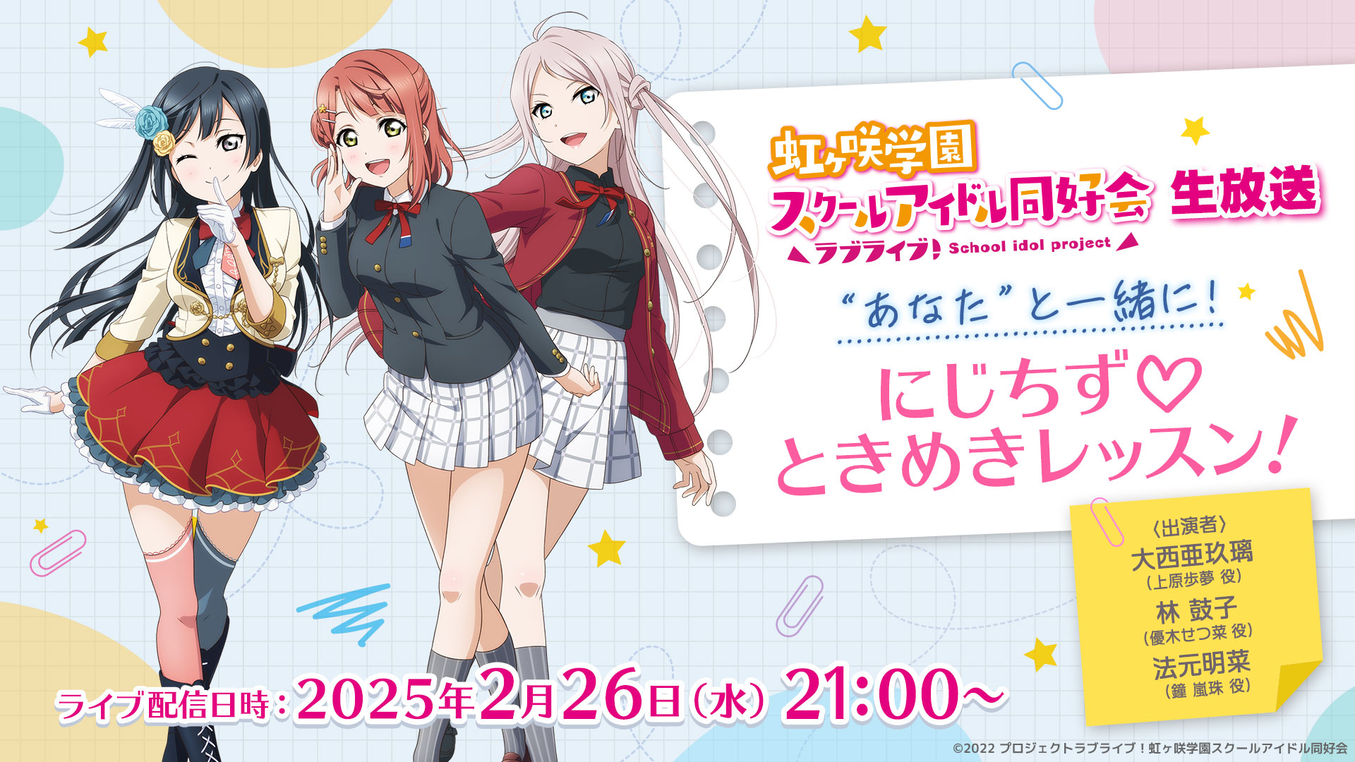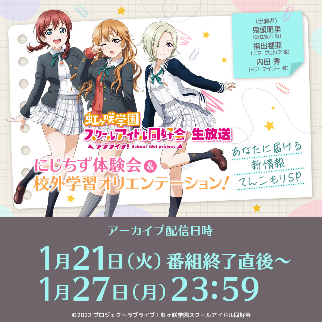虹ヶ咲学園スクールアイドル同好会より3人のメンバーが出演する生放送番組のお知らせです!