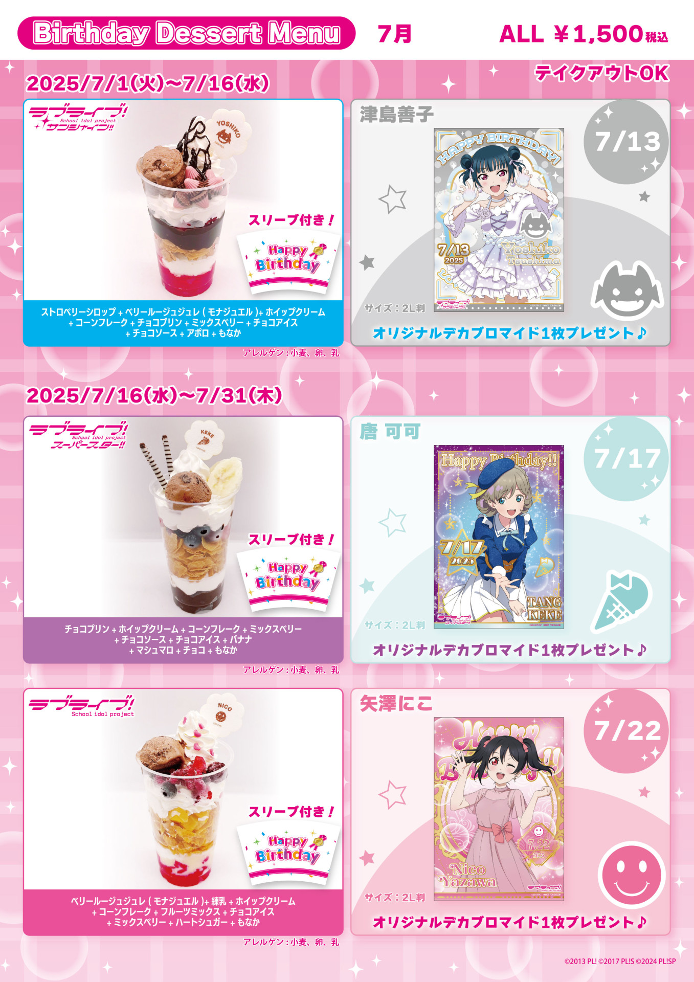 THEキャラCAFÉ×ラブライブ!シリーズ」にて、7月上旬に登場予定のメニューをご紹介!