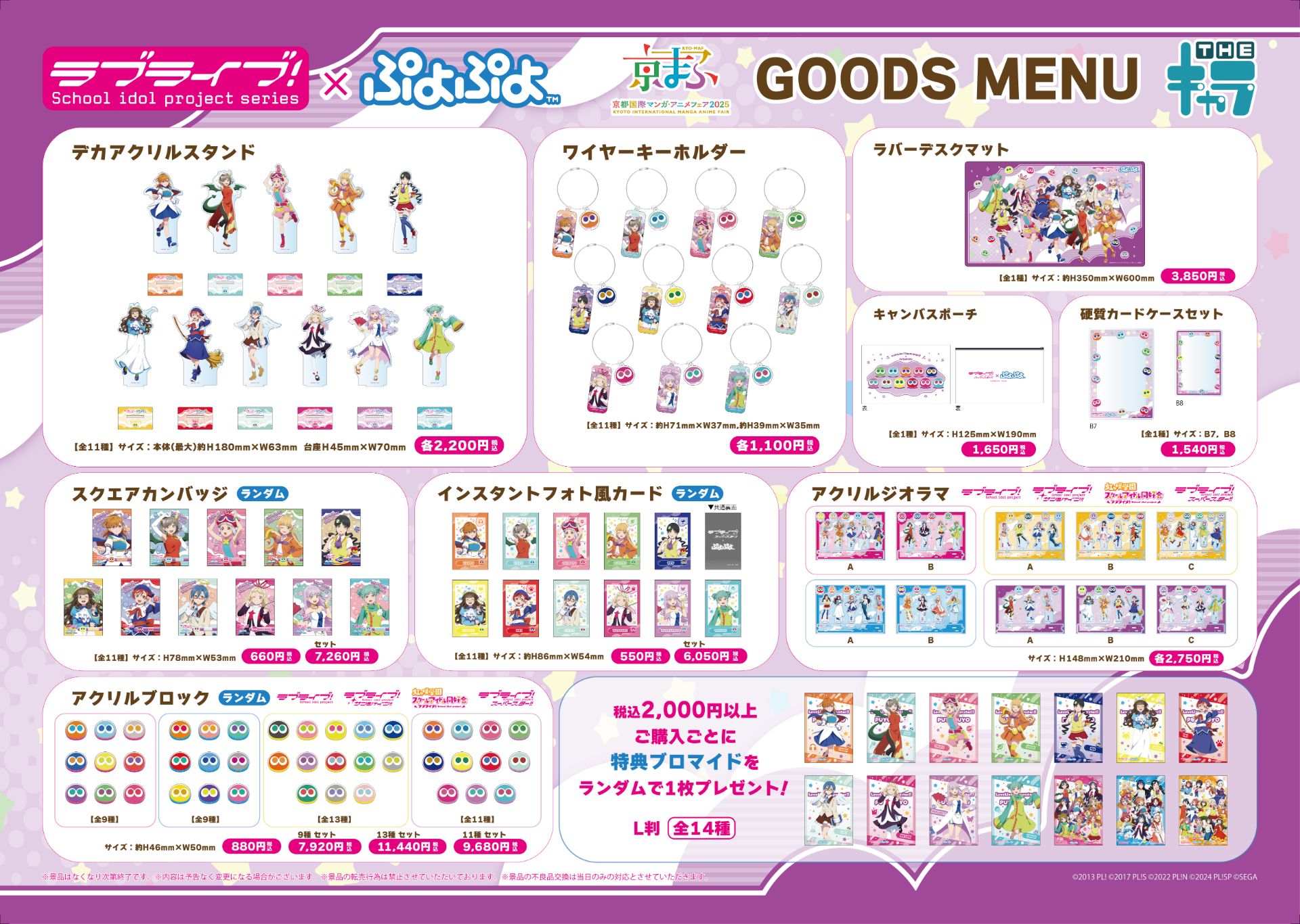 京都国際マンガ・アニメフェア(京まふ)2025のTHEキャラブースにて、「ラブライブ!シリーズ×ぷよぷよ」の出店が決定いたしました!「ラブライブ!スーパースター!!」とぷよぷよキャラクターがコラボした新規描き下ろしイラスト、新商品が登場します♪また、過去の「ラブライブ!」「ラブライブ!サンシャイン!!」「ラブライブ!虹ヶ咲学園スクールアイドル同好会」のぷよぷよコラボイラストを使用した新商品も発売しますので、是非お見逃しなく♪