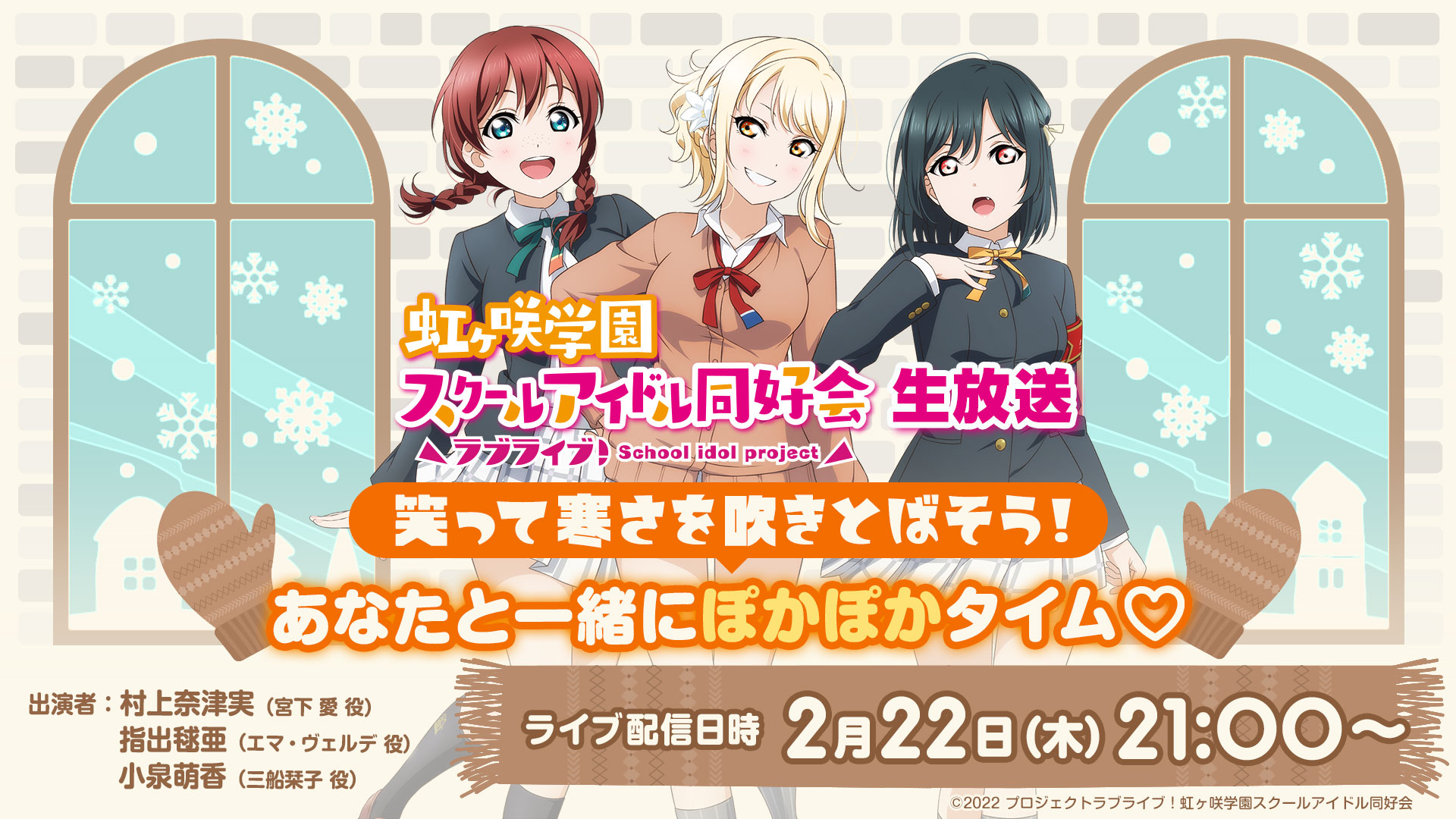 「ラブライブ!虹ヶ咲学園スクールアイドル同好会生放送 笑って寒さを吹きとばそう!あなたと一緒にぽかぽかタイム♡」のお知らせ!