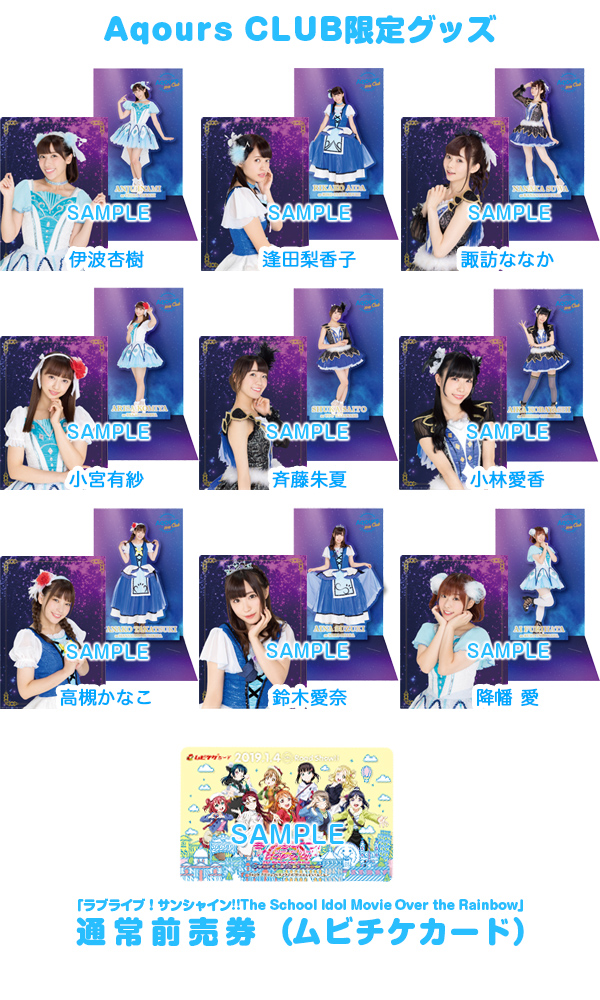 「Aqoursキャスト撮り下ろしA5クリアファイル」、「『ラブライブ!サンシャイン!!The School Idol Movie Over the Rainbow』